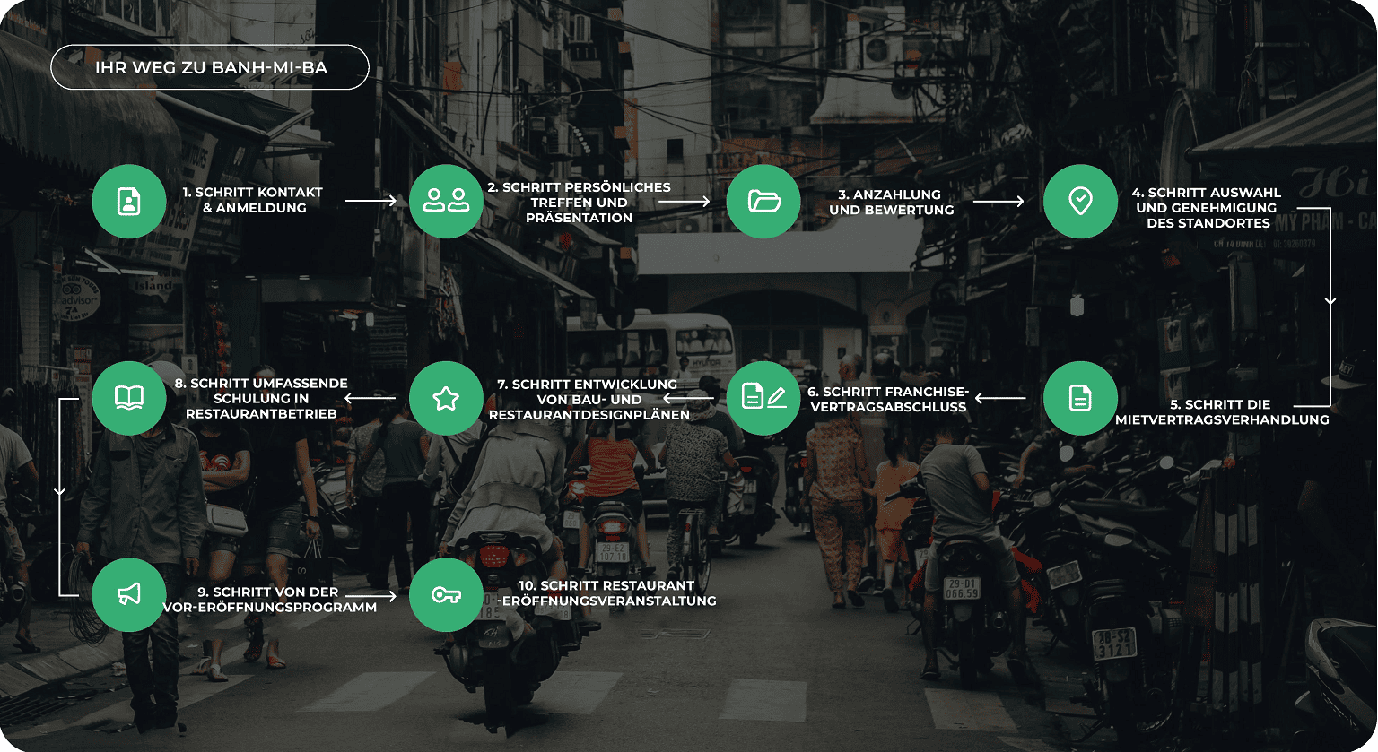 Willkommen in der BANH-MI-BA Familie! Verbinden Sie authentisches vietnamesisches Street Food mit einem modernen, dynamischen Geschäftsmodell und werden Sie Teil unserer Erfolgsgeschichte.